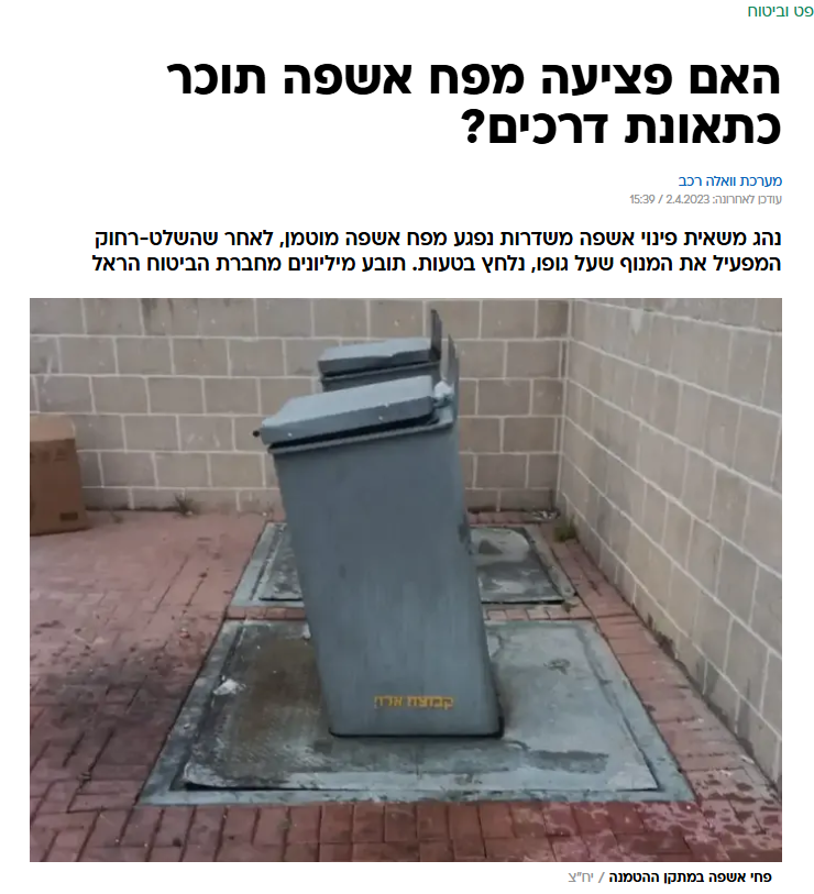 האם פציעה מפח אשפה תוכר כתאונת דרכים?